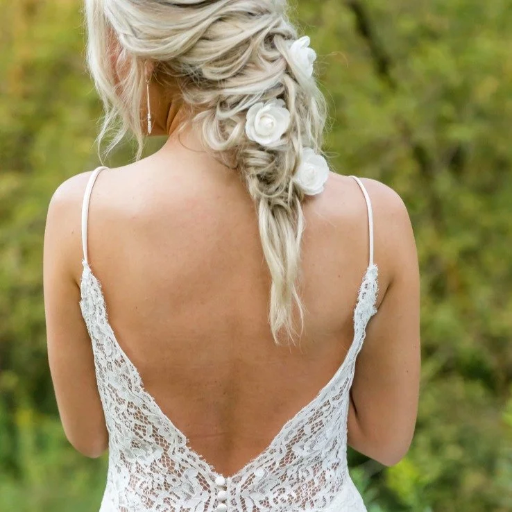 While bohemian and bold lace patterns are still trending, delicate floral accents ruled this year’s runway. Designers showcased new floral laces and emphasized embellishments like three-dimensional appliques and floral beadwork. This trend lends itself particularly well to rustic or romantic wedding themes. This detail is also the perfect complement to an outdoor venue or destination wedding. Keeping with the floral motif, there are so many beautiful ways to highlight or accessorize this style: incorporating fresh greenery into your hair or wearing a flower crown finishes the romantic, lacey look.